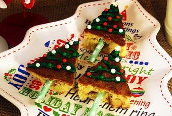 Después sólo cortarlo en triángulos, un toquecito de glasa y estas bolitas, y ya está ambientado para estas fiestas.