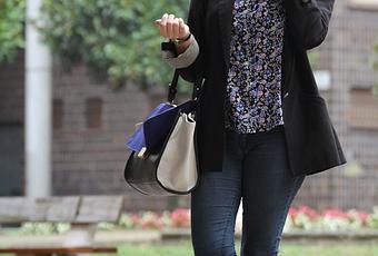 Hoy os enseño un look en tonos azules: camisa de flores, jeans americana... mis preciosas bailarinas y mi bolso tricolor. Vestir para ir a la oficina es un poco sota, caballo y rey, aunque poco a poco voy acostumbrándome (y arriesgando un poquito).
