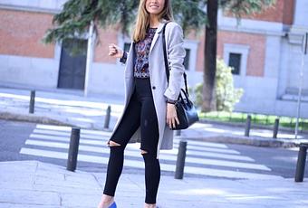 This is today’s case because I wanted to release my new heels in klein blue that I really love. They are so stylish and in thin suede so we can wear them for both summer and winter time. I decided to combine them with black skinny ripped jeans and my top semi transparent with embroidery in the same tones. So I got a tricolor look with the gray jacket and details of the top, black and royal blue. What do you think about it?