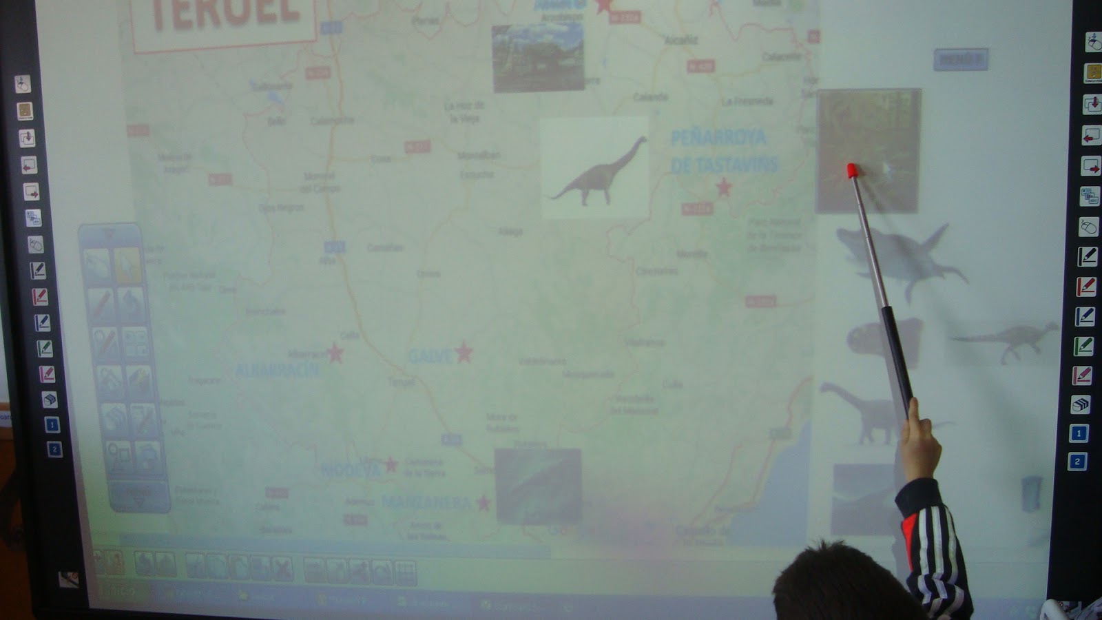 Una vez que sabemos cómo se llama y dónde se encontró, arrastramos su imagen en la Pizarra Digital hasta dicha localidad para al final poder tener nuestro propio mapa de dinosaurios de Aragón.