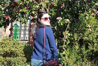 Hoy os muestro un look de nuevo en burdeos, pero esta combinado con azul marino. Para ello combiné sweater burdeos de cuello cisne que ya pudisteis ver más veces por el blog con chaqueta de lana en azul marino, jeans, sneakers en blanco y complementos como el bolso y el collar a juego con el sweater.