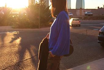 No hay nada que me guste más que un atardecer de invierno, tiene una luz preciosa y me encanta el sol bajo de esta época que calienta un poquito y se agradece un montón. Aprovechamos el puente en Madrid para disfrutar de unos cuantos de ellos ya que a esa hora solemos estar trabajando y no nos damos ni cuenta. Decidí combinar mi nuevo jersey de PullBear azul con mangas globo con los pantalones camuflaje que ya habéis visto aqui y aqui. Cuando compro nuevas prendas trato de pensar al menos dos combinaciones de la prenda nueva con cosas que tengo en el armario de otras temporadas, y esta es una de ellas. ¿qué os parece la mezcla camuflaje y azul klein? ¿También os gusta mezclar prendas viejas y nuevas? Gracias por leerme y Feliz día a todos!!!