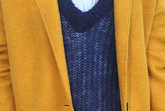 Me encanta la combinación de azul con mostaza. Ayer combiné un abrigo mostaza con prendas en tonos azules y un bolso blanco. Espero que os guste =)
