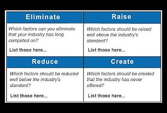 Para in concretando, se deben Eliminar del producto todos aquellos aspectos que son relevantes en la competitividad, es decir, todo aquello por lo que se lleva tiempo compitiendo. Posteriormente, se debe Incrementar todos los atributos que no se suelen destacar, con el fin de encontrar una ventaja competitiva y reducirtodos los aspectos que forman parte intrínseca del producto, como por ejemplo, las propiedades limpiadoras de un producto. Finalmente, y tal vez el punto más crítico, crear nuevos atributos que la industria pueda ofrecer y que no se hayan ofrecido.
