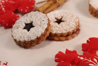 Las galletas Linzer están hechas con los mismos ingredientes que la Linzertorte, pero con una presentación diferente: dos galletas con sabor a almendra con una capa de mermelada intercalada en medio. La parte superior de la galleta está espolvoreada con una capa de azúcar glacé y un recorte para que se pueda ver el color de la mermelada.