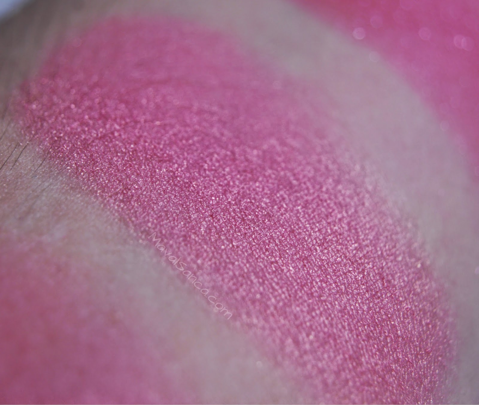 Éste es el color resultante usando todos los colores a la vez.El tono base es el mismo rosa del primer tono pero mucho más subido.Tiene además el toque dorado y las partículas plateadas.