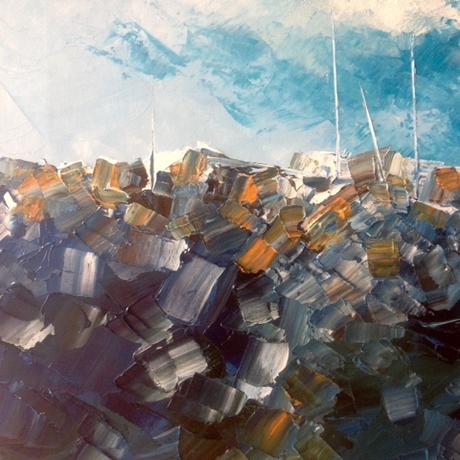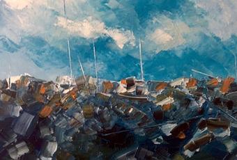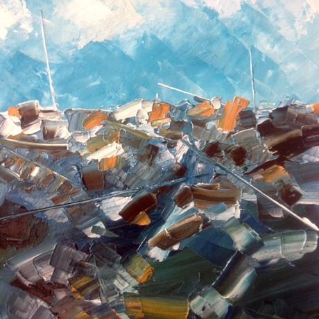 "Boats at the jetty."Spatula Oil canvas. 2015040 x 040 cm...