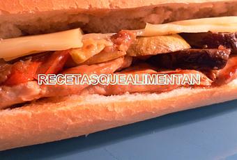 INGREDIENTESUna barra de pan, 4 filetes de carne de cerdo, 100 gr. de queso, aceite de oliva, pimienta negra y sal.