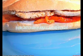 Hacemos los filetes de cinta de lomo a la plancha con una pizca de sal y de pimienta negra, solo vuelta y vuelta. Montamos el Bocadillo de Lomo y Pimientos, poniendo la mitad inferior del pan en un plato o fuente, añadimos parte de los pimientos y finalmente la carne.