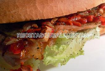 Mientras se hace el sofrito de cebolla, vamos preparando el bocadillo, para ello cortamos los panes a lo largo, ponemos el tomate cortado en rodajas finas en los panes, encima del tomate colocamos la lechuga lavada y cortada en tiras (dos hojas de lechuga en cada bocadillo).