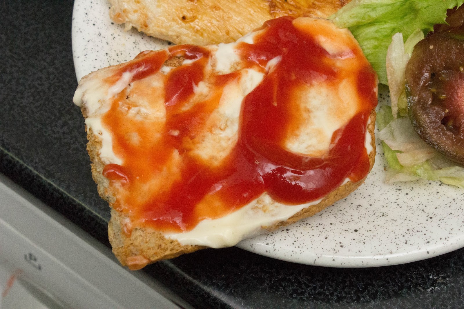 Echar sobre el pan la mayonesa light y el kepchup