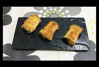 Hoy os traemos un aperitivo delicioso que en 10 minutos está listo, ¡se puede preparar enseguida si tienes invitados por sorpresa!Ingredientes:- 1 calabacín- Queso de cabra de Quesos Record- 1 huevo- Pan rallado- Aceite de olivaReceta:- Lava bien el calabacín, retira el tallo y córtalo por la mitad a lo ancho.- Corta en dos de forma vertical cada mitad.- Con una mandolina, parte tiras finas de calabacín.- Corta trocitos de queso del largo del calabacín y de 0'5cm de ancho.- Coloca un trozo de queso en uno de los extremos de cada tira de calabacín y enróllalo. Sujétalo con un palillo.- Pasa cada rollito por huevo y, después, por pan rallado.- Fríelos en aceite de oliva muy caliente hasta que se doren.- Retira los palillos.- Colócalos en un plato con papel absorbente para retirar el exceso de aceite.