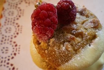 Podemos decorar con algunas frambuesas para que les den color a nuestra presentación y ya puedes disfrutar de estos deliciosos y simples bizcochitos de calabaza.