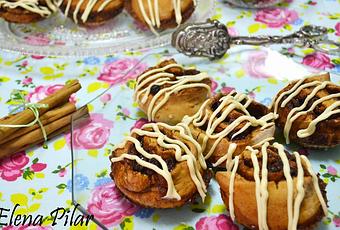 En concreto, son unos bocaditos de canela rellenos de uvas pasas, y decorados con un dulcísimo glaseado de queso crema.