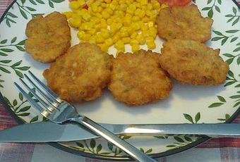 En una sartén anti adherente, ponemos el aceite a calentar. Cuando el aceite está caliente vamos poniendo con una cuchara montoncitos de masa en la sartén, si es necesario los aplastamos un poco. Tapar la sartén y dejar que los bocaditos cuezan de 4 a 5 minutos por cada lado a fuego moderado. Si el fuego es demasiado fuerte, se tuestan quedándose crudos por dentro.Sacamos de la sartén y ponemos en papel de cocina para que dejen el sobrante de aceite.Servimos acompañados de una ensalada.