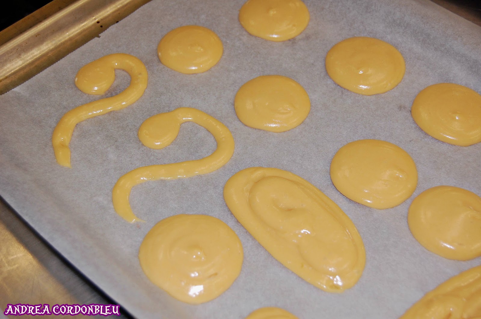 Con una manga, se escudilla sobre un papel de horno encima de una placa. Se hornea a 230 º C, tiro abierto y más techo que suelo. Se tiene la precaución de no abrir ni golpear el horno.