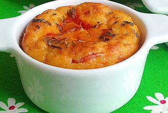 Sacamos los moldes del frigo y les ponemos por encima unas gotas de tomate frito y un poco de orégano.