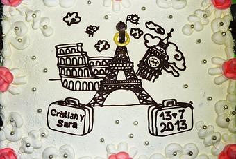 Pastel encargado por sus Amigos para la Boda de Cristian y Sara. Deseaban que se reprodujera la invitación de Boda (julio de 2013).