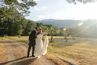 El enlace se celebró en una preciosa finca en Rascafría, con más de 12 hectáreas de paraje protegido y con unas vistas impresionantes a Peñalara. Alquilaron la casa todo el fin de semana y así pudieron estar relajados y compartiendo muchos momentos junto a sus familiares. Para el banquete escogieron un cocktail copioso, donde amenizaron la velada con showcooking de más de dos horas. El plato principal fue el arroz con bogavante y tras él un sorbete de mandarina.