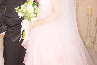 La actriz sorprendió con un vestido color rosa de Giambattista Valli. No es la primera (ni la última) celebrity que elige este color para su vestido de novia: Gwen Stefani, Reese Wetherspoon o Kaley Cuoco también lucieron vestidos rosas el día de su boda. El novio, por su parte, vistió un esmoquin de Tom Ford.