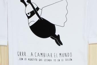 Superhéroe gruñón ha sido el body de bebé elegido para esta presentación, lleva implícito un mensaje “subliminal” muuuuy sutil, ¿no crees? Cambiaremos el mundo, pero a regañadientes. Todos somos pequeños superhéroes que a través de la educación tenemos el poder de cambiar muchas cosas.
