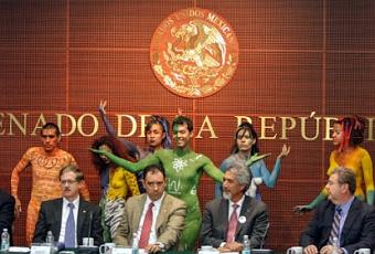Un grupo de artistas semidesnudos realizaron un performance en el Senado, mientras se presentaba la Agenda Ciudadana de Ciencia, Tecnología e Innovación, en donde participó la comisión de Ciencia y Tecnología, así como la de Educación.Los performers llevaban body painting relacionados a los temas de la agenda, que contemplan agua, cambio climático, educación, energía, investigación espacial, medio ambiente, migración, salud pública, salud mental y adicciones, y seguridad alimentaria.