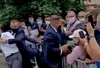Os comento: El Presidente francés Emmanuel Macron ha sido agredido al ser ser abofeteado hoy por un transeúnte, mientras hacia una durante una visita a la comuna de Tain-l'Hermitage, que esta a las afueras de la ciudad de Valence(Una pequeña localidad al sureste de Francia).
