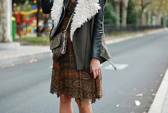Os dejo con un look a capas, con un vestido que no saco hace 3 años en el blog y que siempre me gusta por el aire boho que tiene. Lo completo con biker, chaleco de borrego y botines de serraje. Mi nuevo bolso hecho a mano de piel que mañana os contaré donde lo podéis encontrar..