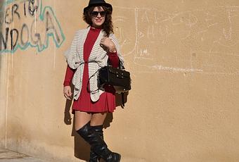 Hola mis bloggers, ¿qué tal estáis?, ¿los reyes magos se han portado bien este año?, por aquí bien... Hoy os traigo un post que a simple vista parece fresco por el tejido del vestido y la media clarita, pero que es súper calentito por la bota alta XL y por el kimono de punto, de hecho llevabamos el abrigo y al final el paseo lo dimos sin él porque al solete se estaba de lujo. Este look lo podríamos incluir en el estilo "boho chic", por la forma del vestido, el kimono con flecos, la bota alta y el sombrero fedora, para darle otro toque este abrigo de corte oversize y complementos en dorado y negro, completan este look. Os dejo con las fotos: