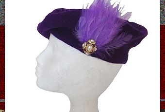 Para diferenciar esta boina de las demás hemos añadido un adorno de plumas en un morado más clarito y una aplicación de pedrería.