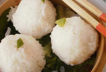 En nuestra cultura, para muchísimas personas comer sin pan, es dificil y a veces casi imposible, en cambio, para los asiáticos, comer arroz es sinónimo de comer, una comida sin arroz es impensable.El arroz es la base más que el complemento de los aromáticos platos asiáticos, ya sean de carne, de pescado, mariscos o verduras.Hasta hace no muchos años, la palabra arroz en nuestro país, era sinónimo de “paella”, como mucho de complemento de sopas o potajes; aunque últimamente, el arroz al igual que otros condimentos del lejano oriente, se ha ido afianzando e introduciendo prestándosele mayor atención en nuestras cocinas donde se va introduciendo las exóticas recetas orientales paulatinamente.Siendo hoy en día, junto con el trigo, un alimento indispensable en la alimentación diaria prácticamente en todo el mundo.¿Sabían que existen cerca de 8.000 tipos de arroces diferentes? Aunque se agrupan en tres grupos básicos, según la forma exterior del grano: medio, largo y redondo.El arroz largo se caracteriza por ser fino, largo lógicamente y bastante duro; una vez cocinado queda seco y suelto; entre ellos uno de los arroces asiáticos más exquisitos y aromáticos, el basmat; en cambio los arroces de grano medio y redondo son más blandos.En la parte de Asia donde se suele comer con palillos, prefieren los arroces de grano redondo, ya que al cocinarlos se quedan pegados, por lo que se pueden coger con más facilidad.El arroz no sólo es el alimento principal en los países asiáticos, sino que a través de los siglos éste “oro blanco” es parte de su cultura; concretamente en Japón, hubo un tiempo que el arroz era un indicador de riqueza; incluso los famosos y legendarios Samurais recibían arroz recién cosechado como paga.Fue en Asia donde se inició el cultivo del arroz. Existen estudios que dejan constancia de que en China aparecen los primeros cultivos, en los valles fértiles del río Huang Ho y del Yang-Tse Kiang, antes del siglo XV a C., en los años 8200-7800 a C.Su historia sitúa su nacimiento en India donde se descubrió por primera vez en su forma silvestre.El arroz llegó al Mediterráneo 350 años antes de nuestra era. Ya en el siglo IV a C, su cultura estaba muy extendida en Mesopotamia, a través de las bolsas de comercio que el rey persa Darío establecido con China y la India.Aunque era conocido por romanos y griegos, éstos lo consideraban más como una planta medicinal que como alimento, fueron los árabes quienes lo introdujeron, en torno al siglo VIII de nuestra era, en la costa española. De hecho, el origen del nombre, tal y como la conocemos hoy en día viene de la palabra de origen árabe “ar-ruzz”.Años después en el siglo XV se propagó a Italia, Francia y para seguir su largo camino tras los grandes descubrimientos protagonizados por conquistadores europeos implantandose en todos los continentes.Un largo, largo camino recorrido que comenzó hace unos 10.000 años, un increible viaje desde India, China, Japón…desde Asia; una historia, la de tan sencillo y simple cereal, tan especial y envolvente como cada uno de los granos de arroz, como su delicioso sabor, su aporte nutritivo y el inmenso universo de preparaciones que podemos realizar con el “oro blanco”.Hoy, influenciada Mi cocina una vez más por ésos países orientales que tanto me gustan, he preparado éstas deliciosas bolas de arroz rellenas de langostinos…haciendo un guiño a la cocina japonesa dándoles forma de "Onigiri"para posteriormente, guiñar con el otro ojo a China dándoles a las bolas de arroz un “toque” de vapor que les dará aromas al cilantro y cebolleta fresca…..