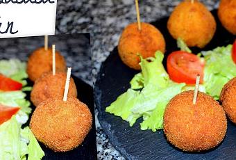 Una vez frías hacemos bolas y rebozamos en huevo y pan rallado dos veces para que queden más crujientes y freímos en abundante aceite.