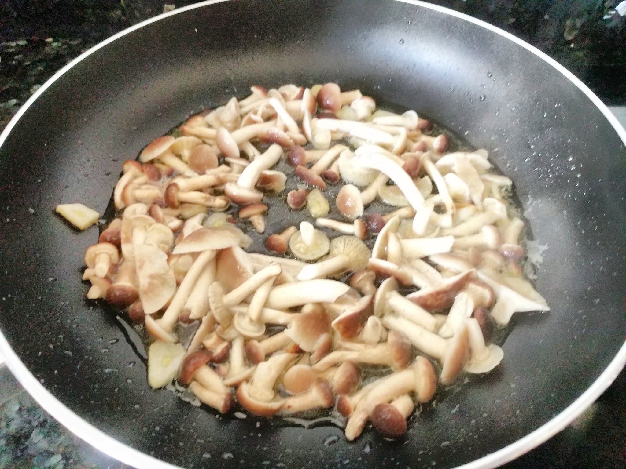 4.Añadimos los bolets en la sartén y salteamos unos 4-5 minutos.