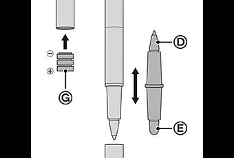 - Punta del Stylus táctil intercambiable para tablet y bolígrafo con un control preciso (D).