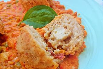 - Servimos las bolitas con la salsa.