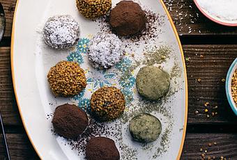 - Podemos rebozarlas con el topping que más nos apetezca o guste: té matcha, raw cacao en polvo, coco rallado, polen de abejas, semillas de chía, semillas de sésamo, almendra picada... las posibilidades son infinitas... 😊