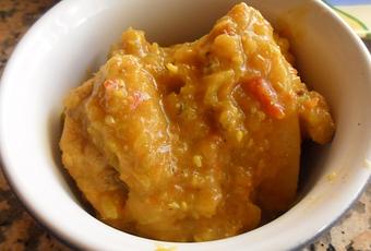 La receta de curry lleva manzana y miel, una variante del clasico y famoso pollo al curry que lleva mucha nata y lácteos, al menos la versión occidental, la oriental no es igual.