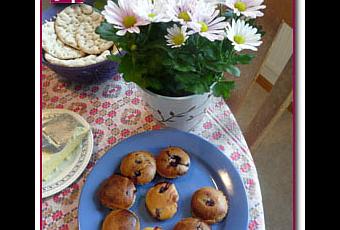 Continuando con los experimentos culinarios que empecé en Madrid con las Magdalenas rellenas con Gomara Moscatel Málaga, se me ocurrió que si eliminaba la levadura de una simple receta de magdalenas, el resultado sería un sabor parecido al pan pero con una textura más jugosa, y si además la rellenaba de algo dulce pues sería más sabroso, así que como estamos en época de arándanos y moras, pues tenía que aprovechar.