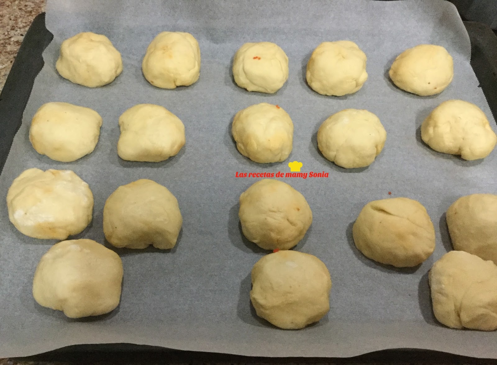 Y así haremos con todas y las colocamos sobre una bandeja de horno forrada conpapel de hornear y dejamos reposar hasta que doblen su volumen 20 o 30 minutos