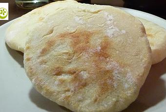 Dividimos la masa en bolas de 65g, los dejamos fermentar de nuevo unos 25 minutos tapados con un paño húmedo. Con la ayuda de un poco de harina aplastarlos hasta que queden de 1 cm de grosor. Ponemos una sartén a fuego medio, la dejamos calentar sin añadir ninguna grasa. Los vamos colocando en la sartén y dejándolos unos 4 minutos por cada lado. Tiene que formarse una fina costra tostada.
