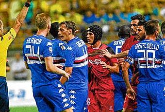 El colegiado de turno (español para más inri) se encargó de poner su granito de arena en esta edición del Carranza. Muy tarjetero y con el rasero cambiado según corriera el aire, pero casi siempre a favor de los italos.