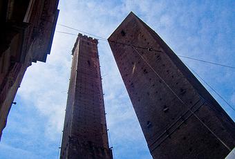 Ubiquémonos. Bolonia (en castellano, en italiano: Bologna) es una ciudad situada entre el río Reno y el río Sávena, cerca de los Apeninos. Es una de las ciudades históricas mejor conservadas y tiene el segundo casco antiguo medieval más grande de Europa, después del de Venecia. El caso es que entre los siglos XII y XIII se comenzaron a construir gran cantidad de torres en la ciudad, sin saberse aún hoy en día el por qué de esta particularidad. Se calcula que llegó a haber unas 180 torres de gran altura en la ciudad por esos siglos. Con el paso de los años, la gran mayoría fueron demolidas o se vinieron abajo por sí mismas. Aún así, hoy en día quedan de pie unas cuantas, lo que le dan a la ciudad un "skyline" bastante particular....De las que aún quedan en pie, las más famosas son las conocidas en su conjunto como "Due Torri" (las dos Torres), e individualmente llamadas la torre Garisenda y la torre Asinelli, nombres que provienen de las familias que encargaron su construcción.