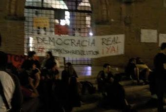 Ciao a tutti.Hasta a Bologna, Italia, ha llegado la onda expansiva de la #spanishrevolution.Los erasmus españoles y del resto de Europa que corpanten nuestro mismo sentimiento, se rebelan también desde la ciudad de la cultura. Una ciudad con una Universidad casi milenaria, desde 1088 de la mano de Irinerio. Desde Dante y Petrarca, esta Universidad, Esta Ciudad siempre ha promovido valores de lucha y compromiso por sus ideales. El foco se centraliza en la Piazza Maggiore, con un asentamiento renovado las 24h. SIEMPRE hay gente.Os dejo un par de fotos que tomé con el movil casi a las doce de la noche.Forza!