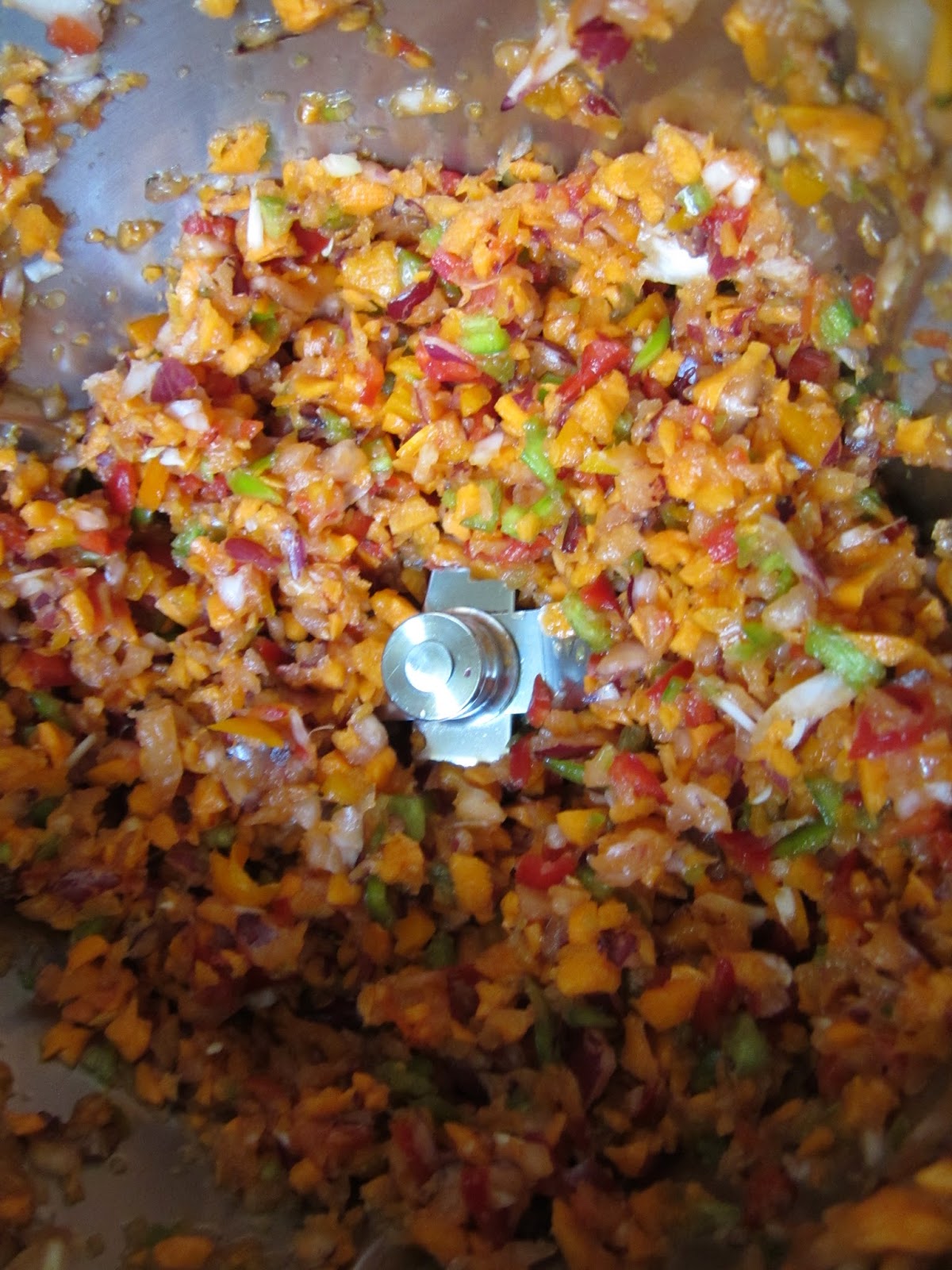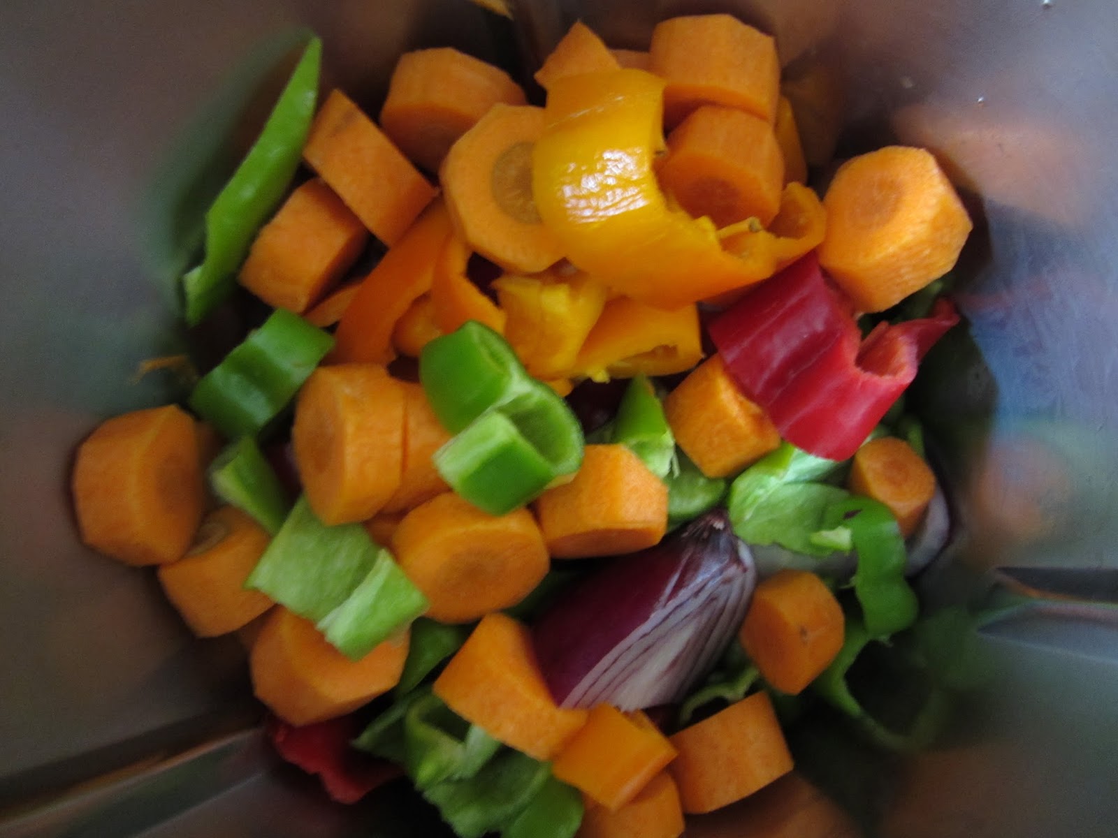 Metemos en el robot de cocina (Yo uso mi Thermomix) Todas las verduras y las picamos bien pequeñas.