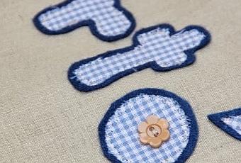 También me pidió una pequeña flor bordada, lo cierto es que tenía unos botones que le hubieran ido perfectos por el tono azulado y el brillo, pero en realidad, más que unos botones son como unas aplicaciones y aunque se pueden pegar, imagino que no aguantarían ni un lavado.