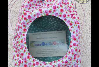 Llevaba tiempo queriendo hacer una bolsita con ventana para ver lo que hay dentro, y al fin me he decidido.Tengo que depurar la técnica porque no me ha salido bien la primera y la segunda ha sido peor, pero el que la sigue la consigue ¿no?El agujero en la tela del forro, me equivoqué al cortarlo y he tenido que apañarlo "de aquella manera", la verdad es que cerrada la bolsa no se nota, pero yo se que está mal y tengo que repetir.He usado el plástico de una carpeta de seguros, y la textura me ha gustado.Por detrás, tan mona.....
