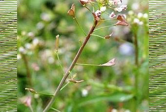 Dentro de las crucíferas hay una plantita en la que unos ven las bolsas típicas de pastor (zurrones), y otros ven corazones. Estos corazones son los frutos característicos de esta planta llamada Capsella bursa-pastoris. Es una planta frecuente en pastizales y comunidades de hierbas en bordes de caminos, etc.