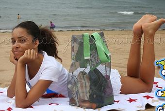 En la última entrada os enseñé la bolsa de playa Poniente, esta vez es la Levante. Similar, porque está hecha de mosquitera, pero distinta base y hechura. Las dos están creadas a base de mosquitera, tela plastificada con iron on vinyl y cinta de mochila, pero como veis tratadas de formas diferentes.Este verano no se puede decir que no os doy ideas de bolsas para playa o piscina. Y recordar que también podéis ver la bolsa de playa del año pasado totalmente plastificada que hice para el "Once proyectos"