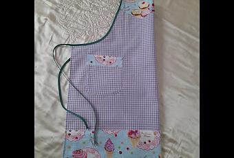 Tengo bastantes retales de cuadros de vichy en distintos colores y he hecho un delantal en color morado claro y como de los dos delantales de cup cakes que hice me quedó un trozo, lo he utilizado para combinar éste delantal que he regalado a mi hija