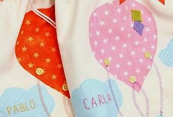 Los nombres bordados en letras mayúsculas, para que en la guardería se lean perfectamente y no haya confusión, aunque aquí entre nosotras, dudo que ningún otro niño lleve unas bolsas tan bonitas como estas...
